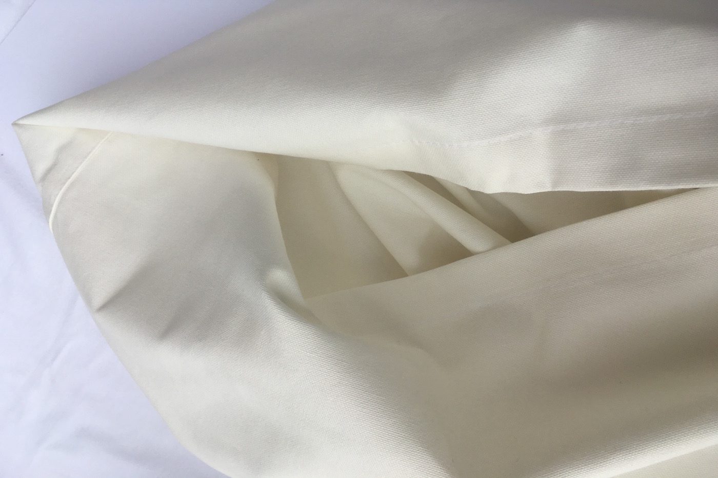 Deze biologische wade is van een zeer hoge kwaliteit canvas gemaakt in de kleur ecru. Door zware kwaliteit katoen vouwt de wade zich met een ronde plooi en veel volume.